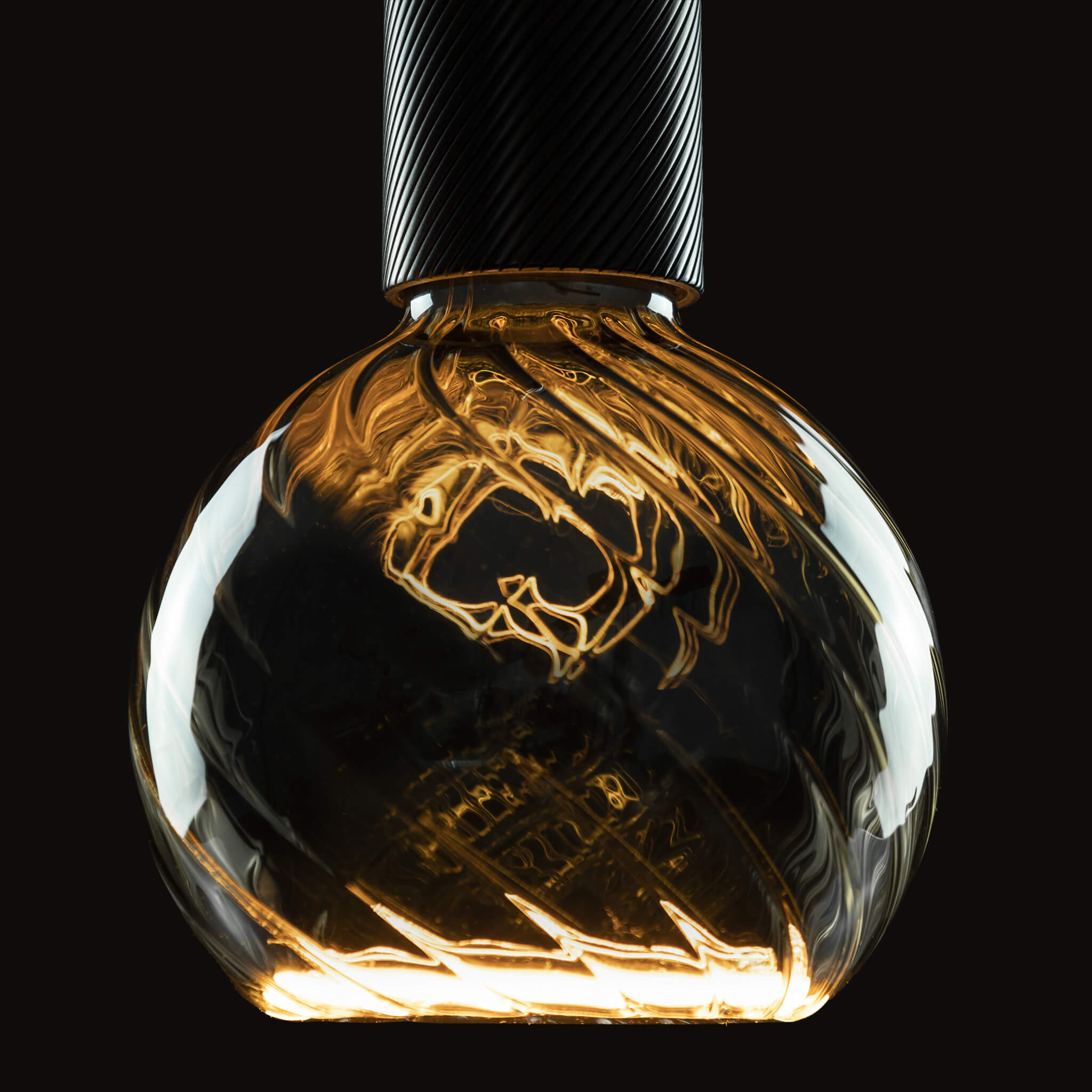 Lampe LED décorative floating E27 G125 – verre gris fumé torsadé