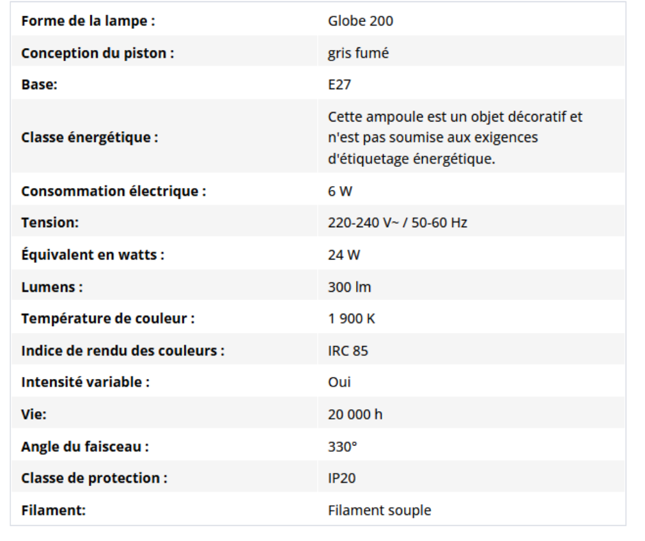 Idéale pour les luminaires ouverts ou sans abat-jour, elle met parfaitement en valeur son design tout en diffusant une lumière chaleureuse et enveloppante. Elle s’intègre aussi bien dans un intérieur moderne que dans un espace professionnel haut de gamme.